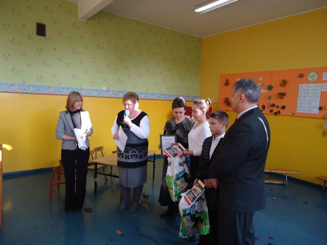 Drugie miejsce przypadło w udziale Zespołowi Szkół w Gostkowie, z wynikiem 74,6 kg, co w przeliczeniu na jednego ucznia wyniosło 0,9008 kg. Miejsce trzecie zajął Zespół Szkół w Dłoni, któremu udało się zebrać 65,6 kg zużytych baterii, co w przeliczeniu na jednego ucznia placówki wyniosło 0,781 kg. Wyróżnienie otrzymali uczniowie ze Szkoły Podstawowej w Miejskiej Górce oraz z Zespołu Szkół w Konarach. Zakupione nagrody rzeczowe- za łączną kwotę 2000,00 zł- wręczyła wszystkim uczestnikom konkursu Grażyna Domachowska z MZO w Lesznie oraz Karol Skrzypczak burmistrz Miejskiej Górki.