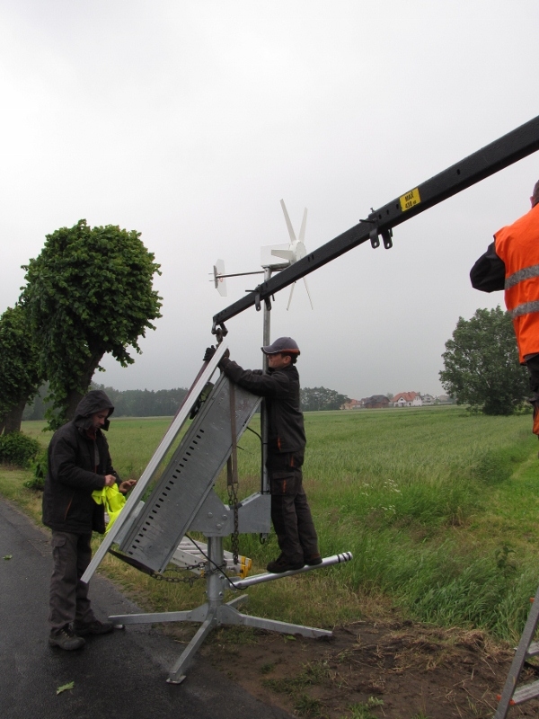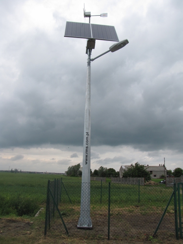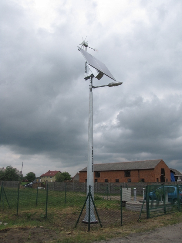 Trwa montaż lamp solarno-wiatrowych, służących do zasilania oświetlenia drogowego. Do tej pory w wyznaczonych miejscach na terenie gminy Miejska Górka zamontowano słupy wraz z instalacjami solarnymi i siłowniami wiatrowymi oraz dwie oprawy oświetleniowe, w celu sprawdzenia ich oprogramowania oraz zdalnego sterowania.