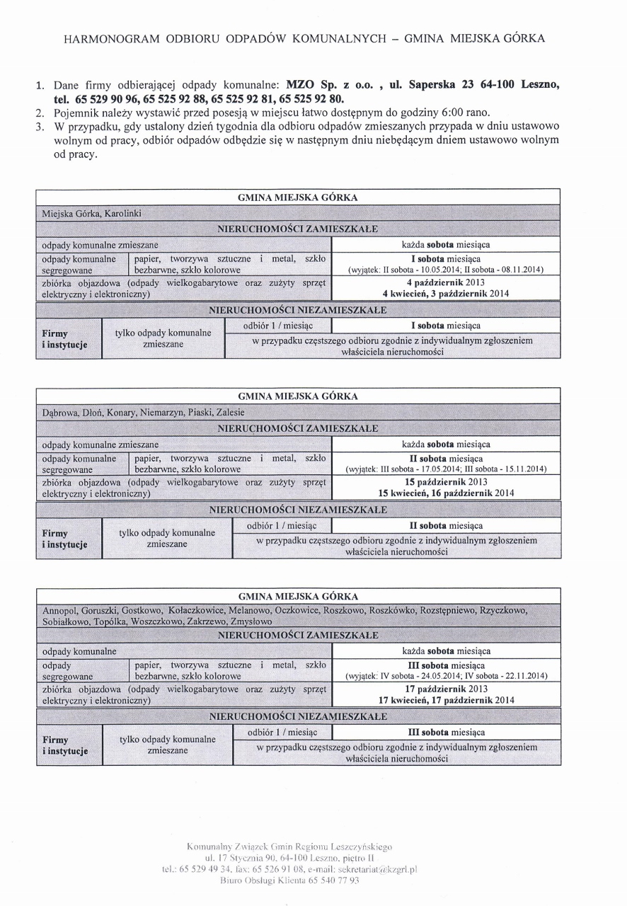 > HARMONOGRAM ODBIORU ODPADÓW KOMUNALNYCH - GMINA MIEJSKA GÓRKA < - KLIKNIJ I POBIERZ
